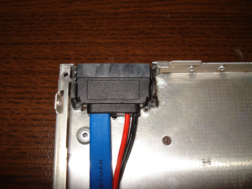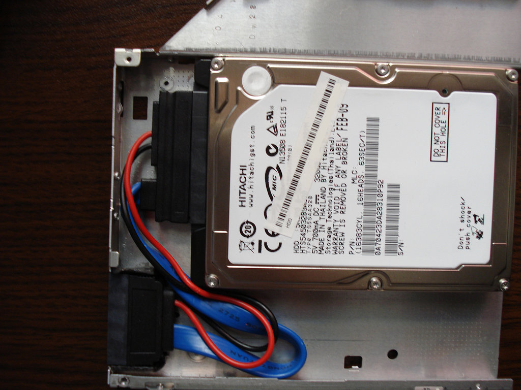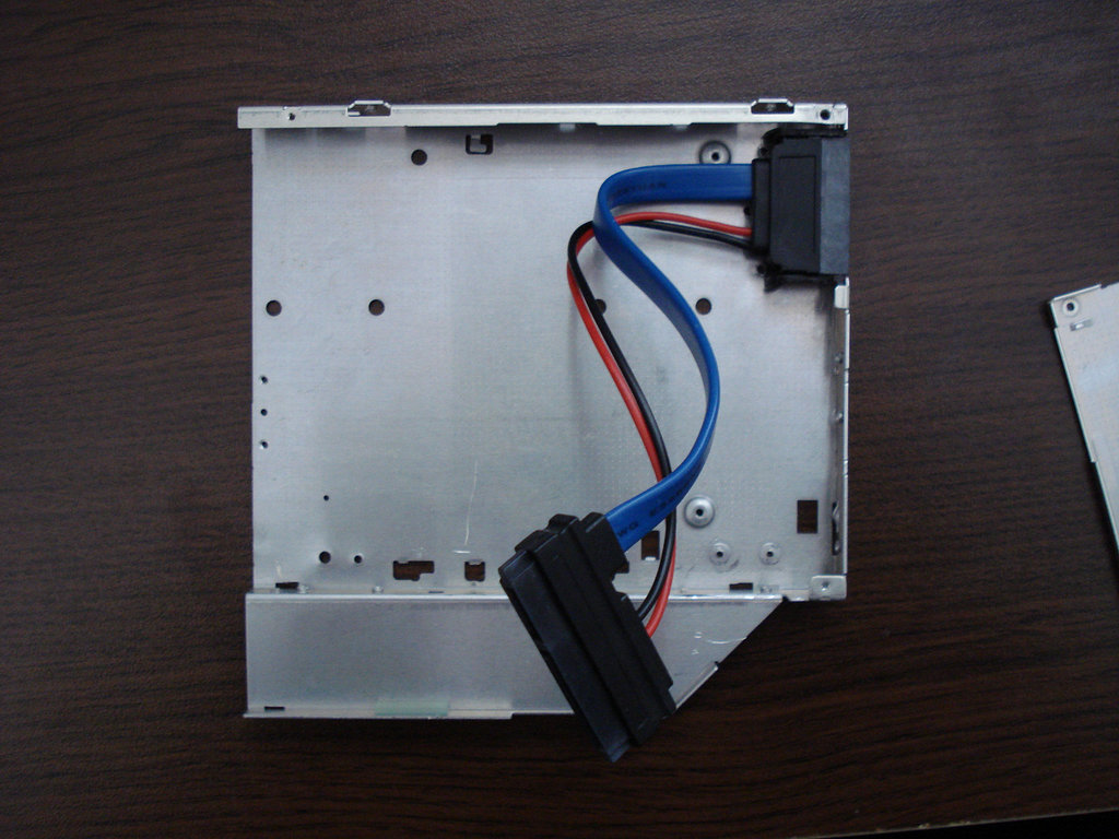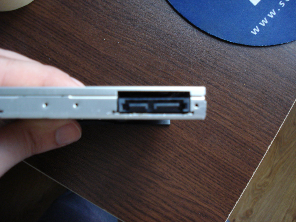 One easy way for boosting your laptop performance is to get a SSD drive. Unfortunately they are still quite small (in terms of capacity) compared to the traditional HDDs. So to get the best of both worlds I needed a way to fit both drives in my laptop. The operation consisted of finding an old DVD ROM and proper cable, getting rid of the dvd’s internals, fixing the cable and hdd onto the metal case.